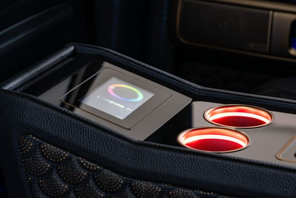 Bảng điều khiển cảm ứng BRABUS để vận hành: – điều chỉnh chỗ ngồi / mạch tài xế – 2 đèn đọc sách trong tiêu đề – điều khiển âm lượng COMAND – Đầu nối sạc USB / Giao diện đa phương tiện USB – vận hành hộp lưu trữ với PIN – Đồng hồ tương tự BRABUS bật màn hình chính