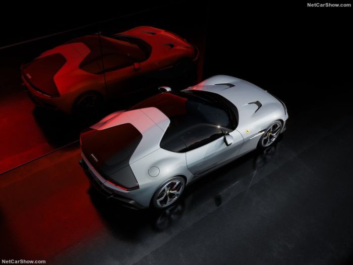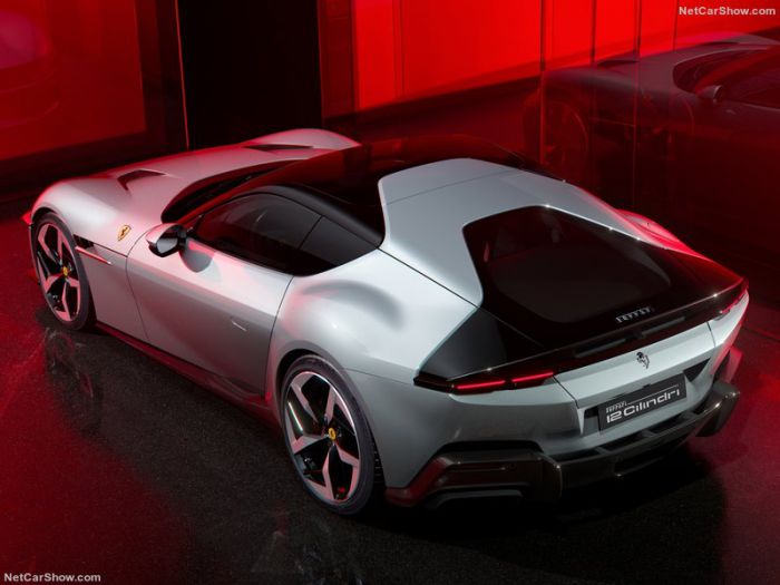 Về kích thước, 12Cilindri lớn hơn một chút so với 812 Superfast ở hầu hết các kích thước, mặc dù chiều dài cơ sở ngắn hơn một inch. Thiết kế tương tự như những gì chúng ta đã thấy ở Roma, với nhiều chi tiết kỹ thuật hơn. Bảng màu đen phía trước mui xe và giữa các đèn lấy cảm hứng từ bảng plexiglass được tìm thấy trên các mẫu đầu tiên của 365 GTB/4 Daytona. Thực sự, toàn bộ mọi thứ khá giống Daytona.