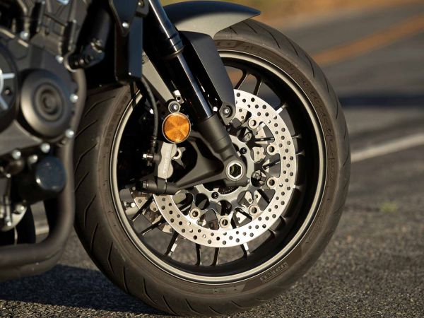 Bên cạnh đó, một điểm thay đổi nữa ở xe chính là hệ thống treo trước. Trong khi phiên bản cũ của xe sử dụng phuộc hành trình ngược màu đen đi kèm chảng ba màu bạc, CB1000R được trang bị phuộc hành trình ngược màu bạc cùng chảng ba màu đen.