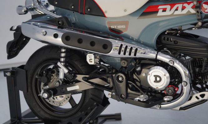 Mẫu xe tý hon của Honda có kích thước dài, rộng, cao lần lượt 1.760 mm, 760 mm, 1.020 mm, chiều cao yên 775 mm. Trọng lượng thô ở mức 106 kg. Dax ST125 trang bị động cơ dung tích thực 124 phân khối, công suất 9,25 mã lực, mô-men xoắn cực đại 10,8 Nm. Hộp số 4 cấp.