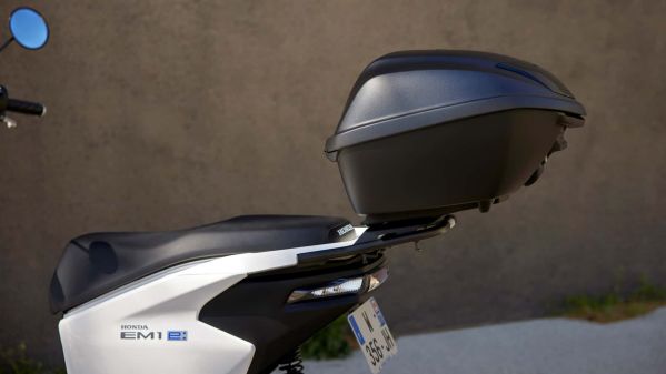 Honda EM1 e: trang bị hệ thống đèn LED, cổng sạc USB, đồng hồ LCD, hộc đồ dưới yên dung tích 3,3 lít, hộc đồ trước, móc treo đồ. Tính năng an toàn với phanh đĩa đơn ở bánh trước, phanh tang trống bánh sau, kèm hệ thống phanh CBS. Độ cao yên 740 mm. Trọng lượng xe ở mức 95 kg tính cả pin.
