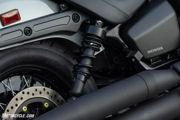 | Hệ thống treo sau | Giảm xóc kép với khả năng điều chỉnh tải trước lò xo ở năm vị trí; du lịch 3,6 inch | |