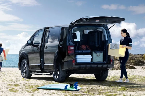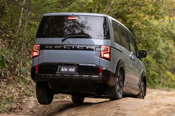 Các đường viền vòm bánh xe được bổ sung giúp nhấn mạnh hệ thống treo vững chắc và khả năng off-road đặc trưng của Delica. Phía sau xe cũng được làm mới theo hướng gọn gàng và tinh tế hơn, với logo “DELICA” tích hợp vào ốp trang trí cửa hậu, tạo nên vẻ sang trọng nhưng vẫn giữ chất địa hình mạnh mẽ.