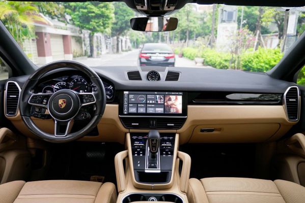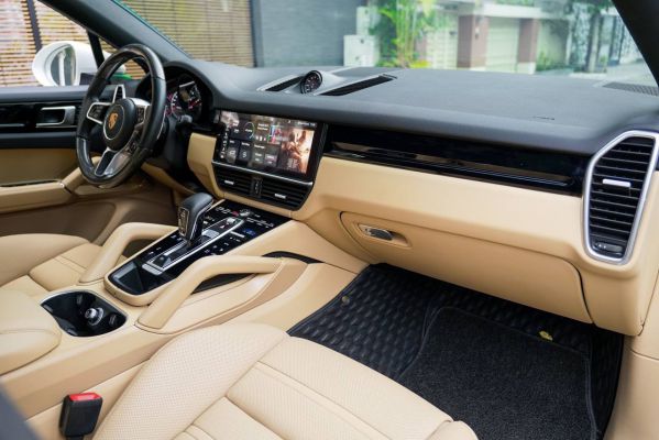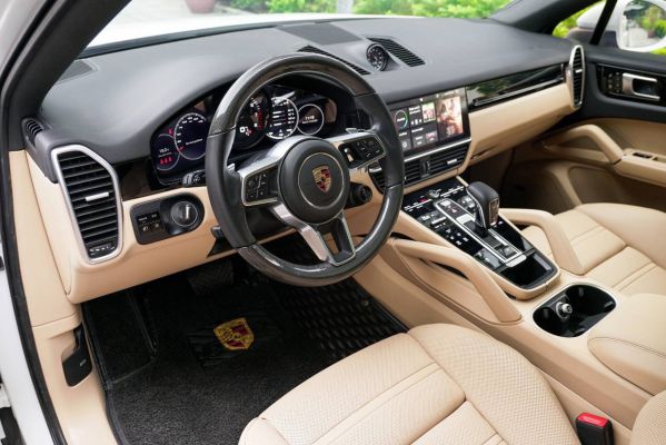Cayenne Coupe 2020 màu trắng nội thất kem cũ có chất lượng hoàn hảo, sự nguyên bản trong từng chi tiết cùng số km di chuyển cực ít.